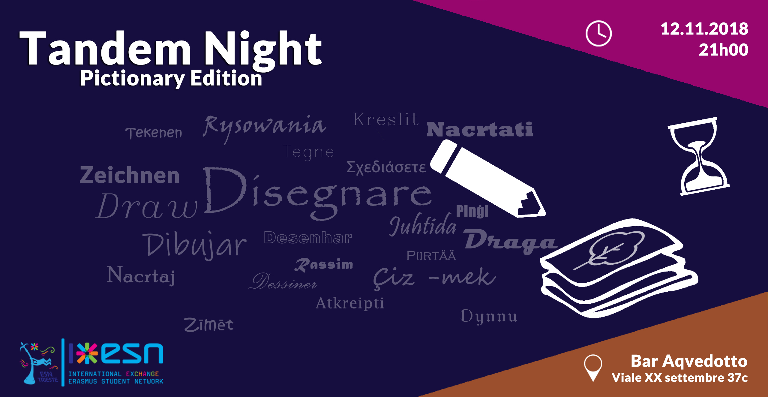 We are back with a new and exciting Tandem-night for you! This time, we have a different game in mind, typical of bonding-nights all over Italy… PICTIONARY! What better chance for you to free your creativity and use your drawing skills to make your teammates guess the secret word and win the competition!